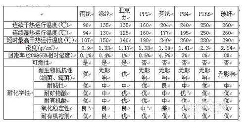 一方面從材料的主要參數(shù)來(lái)看,比如材料克重、厚度、透氣性、斷裂強(qiáng)度、伸長(zhǎng)率、使用溫度、破碎強(qiáng)度、耐酸度、耐堿度、材料密度,可燃性以及耐各種化學(xué)性來(lái)判斷。另一方面是從布袋耐的濕度來(lái)區(qū)別,像常溫、中溫、高溫溫度要求,對(duì)應(yīng)選擇的布袋材料性能也不盡相同。
